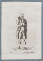 - Full length portrait of Isaac Barré, facing viewer, a hat in his right hand, his left hand in waistcoat