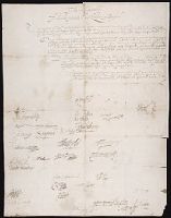 Signatures: R. Warwick; Richard Dacre; Edwarde Bergevennye; Jo. Darcy; Stafford; Thomas Windesore; Tho. Wentworth; Jo. Mordaunt; Edwarde Stowrton; [Dudley?]; Henry Hunsdon; Oxenford; Ro. Essex; Ri. Dorset; W. Salisbury; Ro. Willoughby; Sheffyld; Henry...
